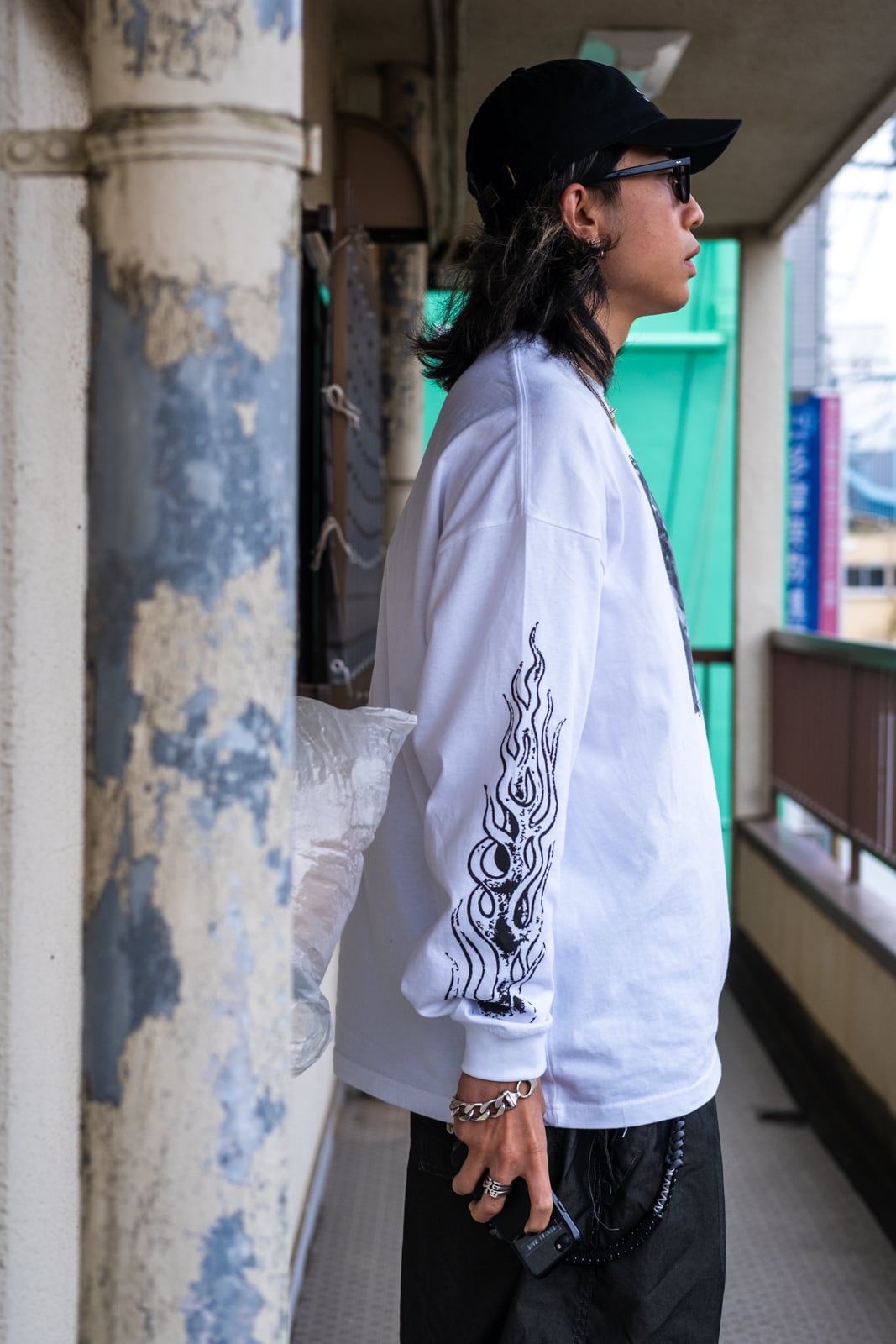 ややルーズなKUROのデニムをあわせています。