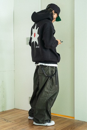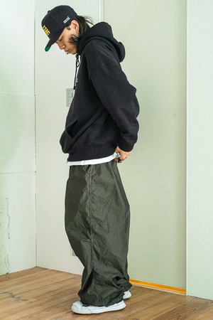 全体のバランスを重視し、リラックス感のあるシルエットに仕上げたプルオーバーパーカ。