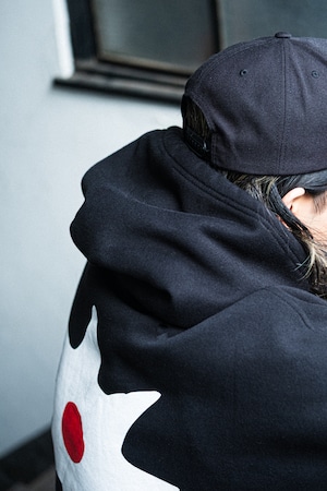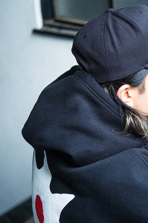 また、フード部分は立体感を意識した設計により、着用時にも形が崩れにくく、背面から見たシルエットにも存在感を持たせています。